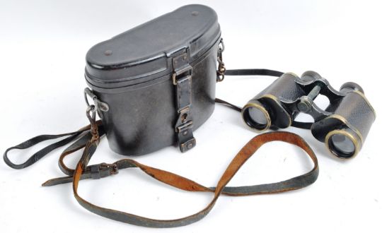 A pair of WWII Second World War Third Reich Nazi German era Carl Zeiss ' Jena ' field binoculars. The binoculars 6x30 magnification with numbers 1769399 to the right eyepiece. Optics appear clear. Retaining original leather straps and Bakelite case.