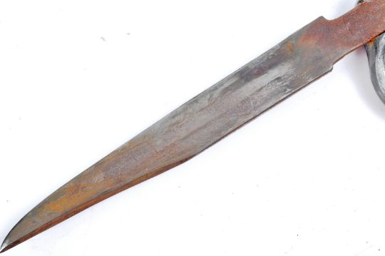 An original WWI First World War British Army trench fighting dagger. The hilt with knuckle protector / knuckles and dated 1914. Leading to a double edged elongated blade. Unknown manufacturer, possibly private purchase or similar. Measures approx; 27cm long.