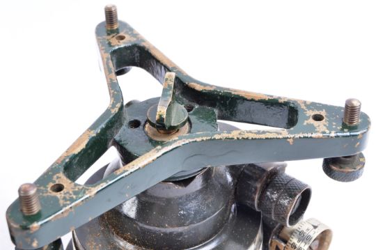 An original inter-war WWII Second World War used Artillery ' Director No.6 Mk II No. 786 ' range finding field instrument. Dated 1924. Green, with various adjusters and dials present. Maker's marks to body. Housed within an original leather carry case, also dated 1924. Instrument measures approx; 14cm tall.