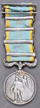 Crimea - 19th century Victorian Crimean War Medal awarded to one Daniel Wilson, with four clasps for Sebastopol, Inkermann, Balaklava and Alma. Features a young bust of Victoria to the front, with original ribbon.