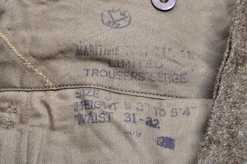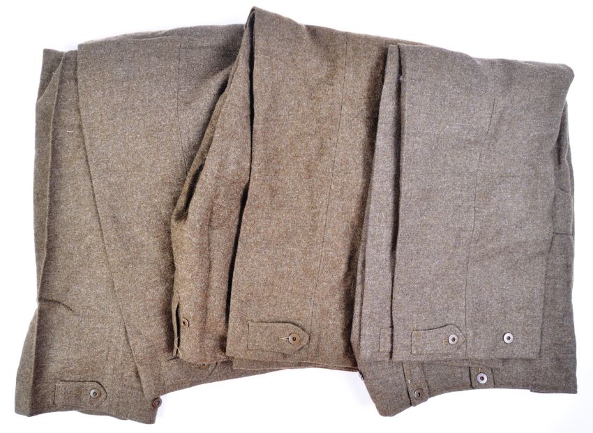A collection of x3 WWII Second World War interest British Army uniform trousers. One pair illegibly dated (possibly 1939) size 8, and x2 other post-war pairs of trousers. All generally in good used condition. Ideal for re-enactment.