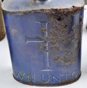 A large collection of x16 original WWI First World War British Army water bottles / canteens. All in various states of condition. Includes several blue enamel examples (one later painted for display) and many green examples. Some retaining corks, most not, and same for the canvas covers.