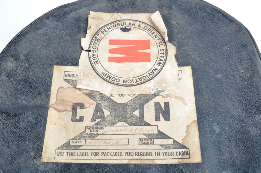 An original mid-20th century Moss Bros retailed top hat and associated box, belonging to one Group Captain W. G. Moseby of the Royal Air Force. The top hat in grey, with black band, size 6 7/8. The hat box with various shipping labels present, one reading Moseby's name for the ship 'Arcadia'. Supplied with some later printed research.