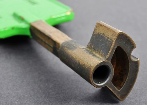 Railwayana - an original British Railways single line bronze signalling key / token. The key marked No. 21 ' Evesham and Moreton In Marsh ' on a green painted background. Measures approx 17cm.