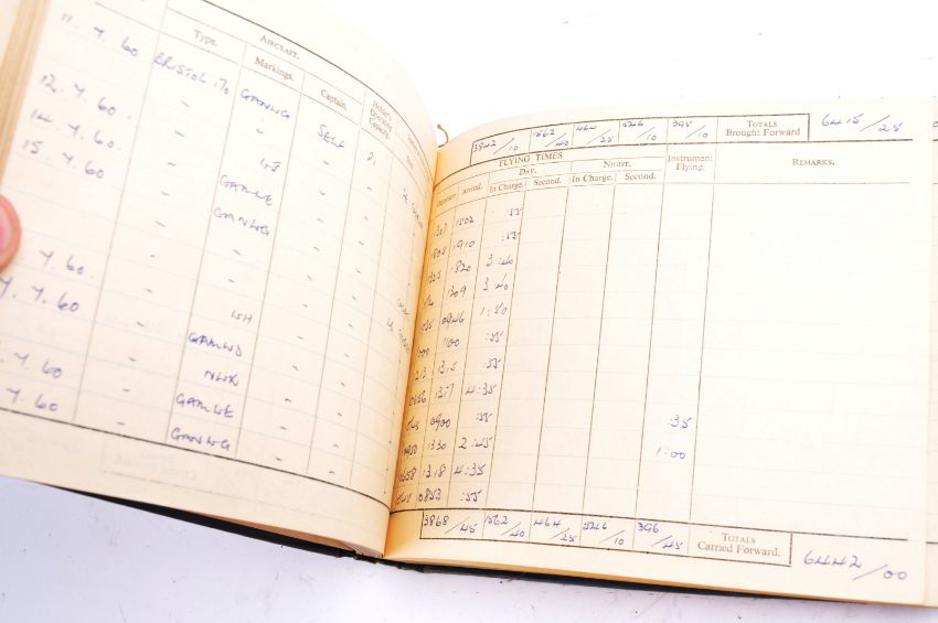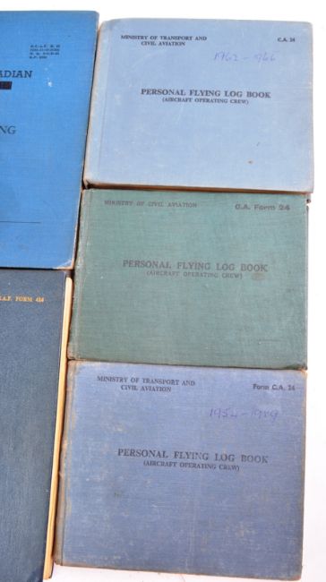 WWII Second World War Interest - a set of x7 original post-WWII Second World War to 1970s RCAF Royal Canadian Air Force pilot's log books, belonging to one Robert Clive Bovill of Surrey, one time of 766 Squadron. Bovill joined the Navy Air Force in 1943. The books cover the period 1946 to 1970s and include his flights immediately post-War and later into Commercial flying. Most books significantly filled. Fascinating personal archive. (7 books in total).