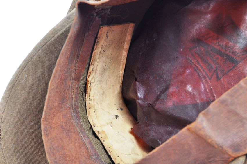 An original WWI First World War period British Army uniform Officers' ' crusher ' cap. The peaked cap complete with George VI Royal Engineers cap badge to front. Maker's label to interior for AP Dalzell of Belfast. Slight AF - moth holes and age related wear. Complete.