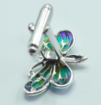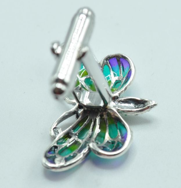 A pair of stamped 925 silver cufflinks having stylized plique a jour enamel butterflies atop. Total weight 9g.