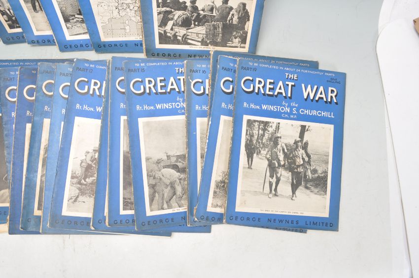 An early 20th century 1930s 24 edition set of The Great War magazines by Winston Churchill London, published by George Newnes Ltd. Measures 26cm x 18cm.