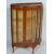A 1950s vintage walnut veneer bow fronted china display cabinet having a raised back over a single glazed door opening to reveal a shelved interior raised on pad feet. Measures 116cm x 84cm w x 33cm d