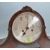 An 20th century Napoleons hat 8 day mantel clock having a silvered face with arabic numerals to the chapter ring set within an oak case with palmette decoration to the top and floral decoration to the corners. Measures 35cm x 75cm.