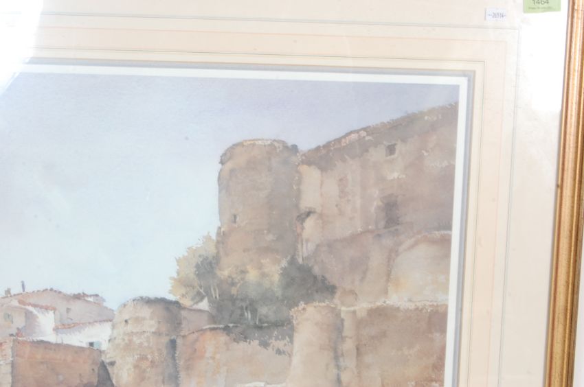 William Russell Flint RA - A limited edition print ' Gossipers at le Castellet ' watercolour painting depicting a French provincial town. Limited edition number written to the corner. Framed and glazed.