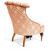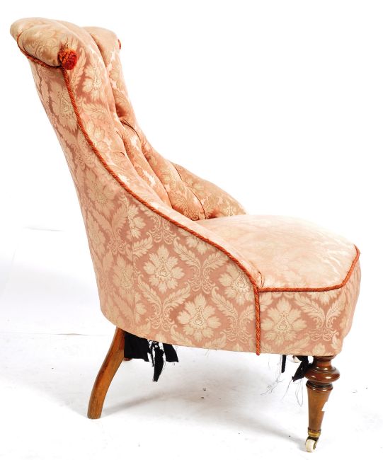 An antique 19th Century Swedish upholstered shell back lounge chair / easy chair or bedroom chair having a shaped scroll shell back with button backrest. Upholstered in a rich damask pink silk with acanthus leaves and botanical detailing. All raised on turned wooden legs with white ceramic castors. In very good condition with some minor wear to the legs. A great example. Measures 91cm x 61cm x 70cm.