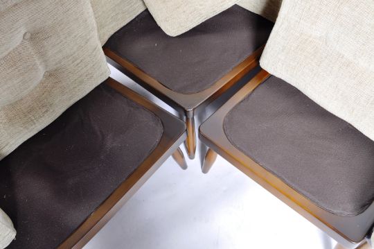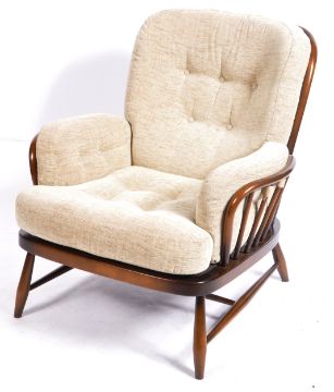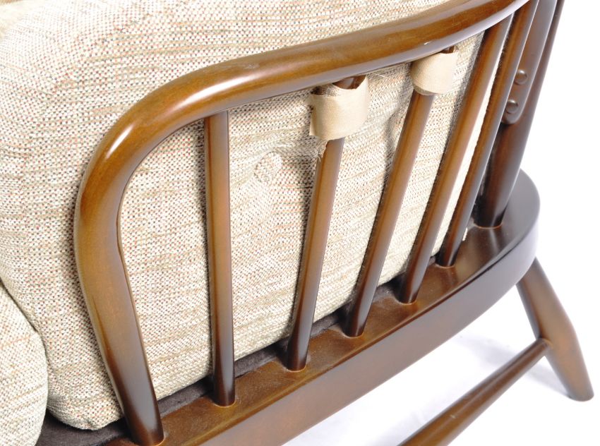 Lucian Ercolani - Ercol - Jubilee - An incredible rare original retro vintage 1960's / 1970's beech & elm living room corner sofa settee modular seating. Comprises a corner stick back section with single seat section and two end piece chairs. All with hoop backs and spindles with shaped supports and legs. A very unusual piece of Ercol furniture. Measures approx;
