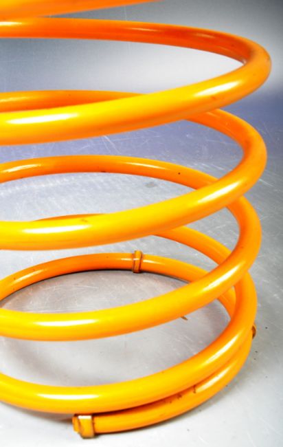 Herbert Terry & Sons - Zebedee - A rare and unusual retro vintage 1970's table lamp comprising of an metal coil spring with a two tone globe light shade that sits on top, all finished in a deep mustard yellow enamel. Appears to be the original finish however we cannot find another in this finish so may be a repaint or custom. Some minor age related wear in places. A great example. Measures approx; 40cm.