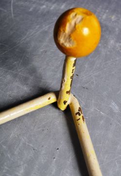 Two retro vintage mid 20th Century Sputnik Atomic wire items comprising a 'W' form coat hook with coloured ball finials and a wire magazine rack with coloured ball finials. Both finished in white. Largest measures approx; 50cm wide.