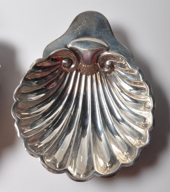 Two hallmarked sterling silver bon bon dishes having shell trays raised on bun feet. Bearing hallmarks for 1915, Sheffield, James Deakin and son & Mappin & Webb, Sheffield, 1895. Together with a hallmarked sterling silver photo frame. Gross weight of both bonbon dishes98g