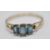 A hallmarked 9ct gold ring set with three oval cut blue stones flanked by two round cut diamond accent stones on split shoulders. Assay marked for Birmingham. Weight 1.5g. Size