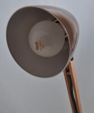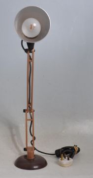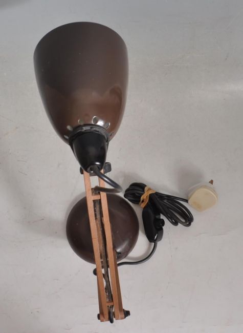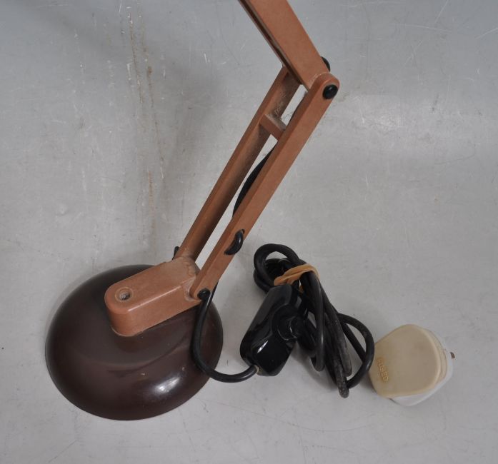 Terence Conran - Habitat - Mac Lamp No.8 - A retro vintage 1970's adjustable anglepoise desk / table work lamp light by Terence Conran for Habitat, Maclamp. The lamp light having a brown conical shade on a twin faux wood plastic arm support and brown finished base. Measures 55cm.