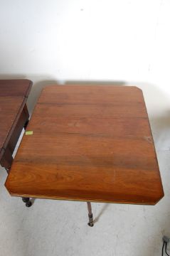 A 19th century Victorian mahogany Pembroke table / dining table. The table of a rectangular with twin drop leaf to each side, single drawer to the frieze raised on turned legs with casters along with a Edwardian mahogany Sutherland table having shaped top raised on turned gate legs. Measures 71 x 88 x 45cm.