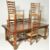 A large and impressive antique style 20th Century farmhouse oak refectory dining suite comprising a large refectory dining table with planked top, bulbous turned legs with block feet and 'H' stretcher along with a matching set of six ladder back padded seated chairs (four standard chairs & two carvers. A great high quality reproduction set with some minor usage marks, Measures, 77 cm H x 214 cm W x 107 cm D