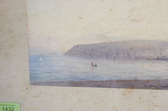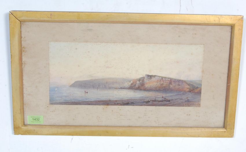 An early 20th century Arthur W Perry watercolour painting depicting Devon Bay and cliff. Signed to the lower corner. Framed and glazed.