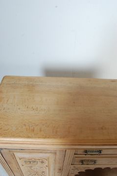 A late 20th century antique style sideboard dresser base credenza having a flared top, atop a central bank of two drawers flanked by single door cupboards.Measures, 88 cm H x 156 cm W x 49 cm D