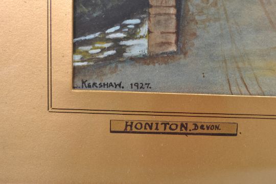 L H Kershaw - A pair of 1920's water colour on board landscape paintings depicting Honition, Devon and Selworthy, Somerset each depicting thatched cottages in rural villages. Both signed. Framed and glazed. Measures 31 cm H x 41 cm W