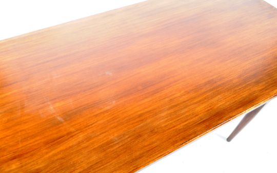 Jentique - A retro vintage 20th Century British Design space saving teak wood extendable dining table having a rounded rectangular top. Two D-shaped drawer leafs to each side with a shaped frieze below with all being raised on straight tapering supports. Measures approx 71cm x 138cm x 73cm.