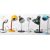 A mixed group of five retro and contemporary gooseneck arm desk / table lamp lights to include a white Lampways example, orange and red colourway example, black and chrome lamp ect. Together with a contemporary rise and fall Eyeball lamp finished in blue.