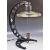 An unusual scratch built steampunk industrial table lamp / desk lamp comprising a high voltage electrical pylon conductor set to two large engineering micrometres with glass ribbed circular shade. Rewired & PAT tested. Measures approx; 43cm x 38cm.