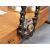 An unusual professionally made scratch built steampunk industrial table desk lamp light constructed mostly from bike / bicycle parts having an elongated bulb with brass fittings and large chainwheel with bike chain section to column and base. All raised on a wooden plinth base. Measures approx; 60cm tall.