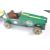 An unusual 20th Century 1980's childs tinplate peddle car / go kart being battery powered. Detailed in green with various Castrol advertising livery. Rubber wheels with working steering ,on off switches and complete with matching trailer.  Motor operated via the steering wheel. Untested. An impressive example. Measures approx; 180m long. Along with a pit stop ramp / toy.
