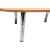 A large vintage 20th Century coffee table / center / lobby occasional table having a thick oval oak top supported by four chrome cylindrical legs with black plastic feet. Condition; no visible damage slight rust to the legs. Measures approx; 50cm x 188cm x 46cm.
