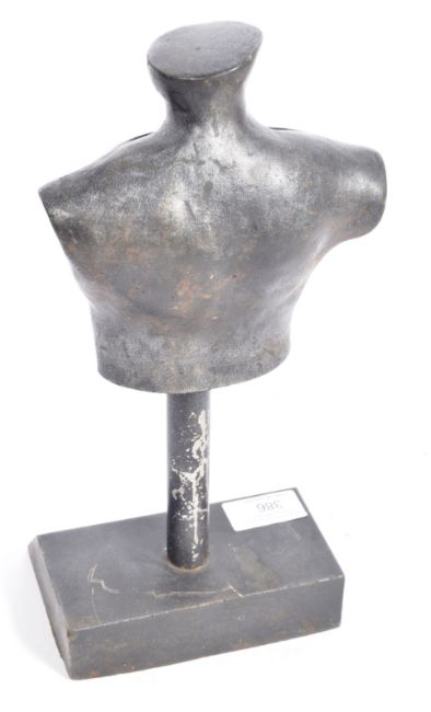 A vintage 20th Century carved wood advertising point of sale shop display bust / torso for Lambretta. The male torso supported by a single stem upon rectangular sloped base. Condition; minor surface marks, overall good. Measures approx; 30cm x 14cm.