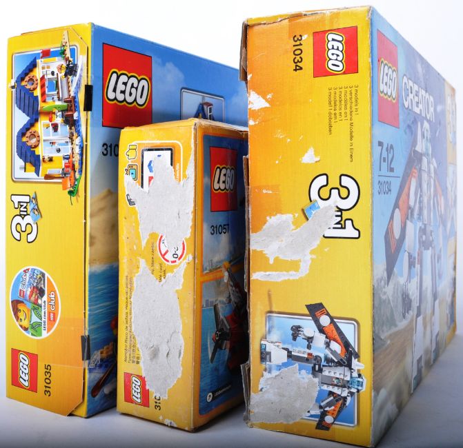 Lego Sets - Lego Creator 3 in 1 - a collection of x6 original boxed Lego Creator sets comprising 31035 Beach Hut, 31019 Forest Animals, 31034 Future Flyers Robot, 31087 Dune Buggy (factory sealed), 31057 Air Blazer and 31055 Red Racer. All sets appearing to be resealed but the vendor assures us al sets are 100% complete.From a large private collection of Lego - the vendor assures us sets are 100% complete (where stated) but contents have not been checked by us. In the majority of cases boxes have been resealed to secure the contents (unless stated as 'factory sealed' in which case the set is unopened). East Bristol Auctions cannot guarantee completeness.