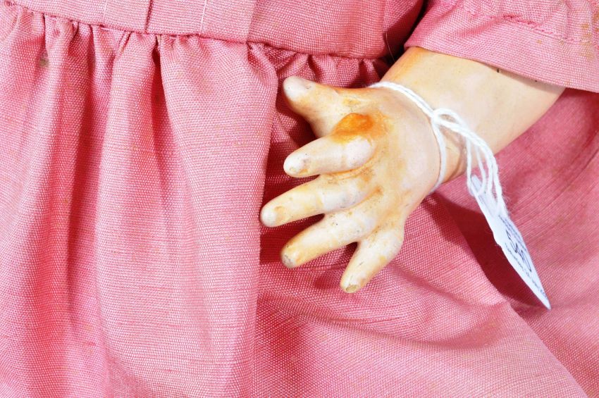 An antique early 20th Century German ' Schutzmeister Quendt ' made bisque headed doll. The doll having brown flirty eyes, finely painted eyebrows, blonde eyelashes and open mouth with teeth present. Composition body with all fingers and toes present, dressed in period clothing and bonnet. Marked to the back of the head 201 QS Germany. Measures approx 50cm.