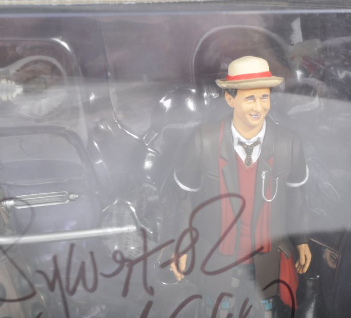 Doctor Who - Sylvester McCoy (Seventh Doctor) - autographed Big Finish Character Options made ' Seventh Doctor & Axis Strike Squad Dalek ' action figure set. As new, unopened. Signed to the front by McCoy in black ink, adding his Doctor number. Obtained in person, and supplied with a certificate.