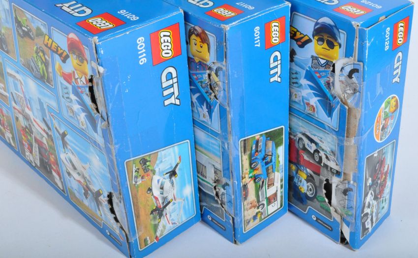 Lego Sets - Lego City - 60116 - 60117 - 60128 - 60150 - 60164 - a collection of x5 original boxed Lego City sets comprising 60116 City Ambulance Plane, 60117 City Van & Caravan, 60128 Police Pursuit, 60150 City Pizza Van and 60164 Sea Rescue Plane. All sets resealed and believed complete but remain unchecked by us.