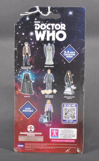 Doctor Who - John Leeson (Voice) and Bob Baker (creator) - an autographed Underground Toys / Character made action figure ' Rose Tyler with K9 '. Factory sealed, mint and as new. Signed to the front by Leeson and Baker in black ink. Obtained in person, supplied with a certificate.
