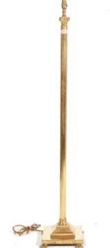 A 1970s vintage neo classical Corinthian column brass standard floor lamp having a stepped base upon lion paw feet. Measures 137cm x 27cm x 26cm.