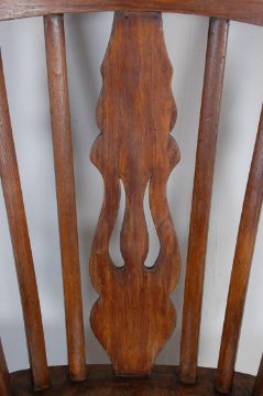A 19th century Victorian beech and elm Windsor chair having a shaped top rail over a spindle back raised on a saddle seat raised on turned legs united by a stretcher. 103cm h x 58cm w x 45cm d