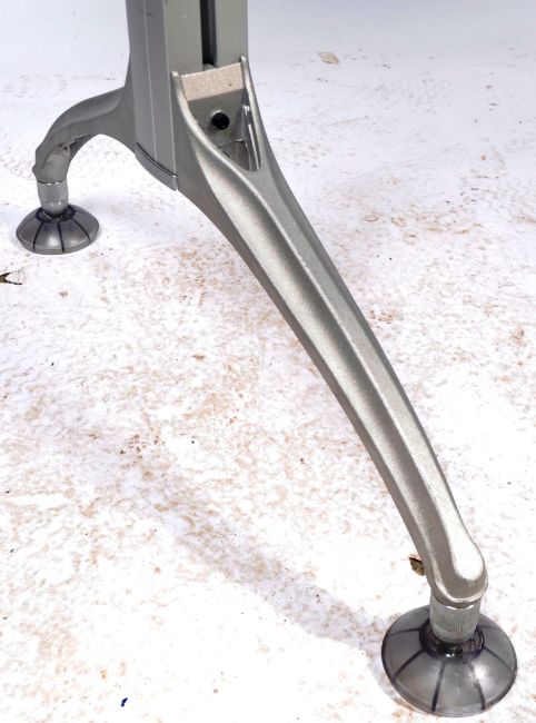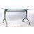 A contemporary designer dining table having frosted glass round rectangular top supported by metal frame under tier with all being raised on A-frame supports. Condition; slight wear, no visible damage. Measures approx; 72cm x 140cm x 80cm.