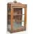 A 1920's oak pedestal display cabinet vitrine raised on squared legs with full length glazed door housing shelved interior, the top with with stub stage gallery back. Measures, 104 cm H x 62 cm W x 31 cm D