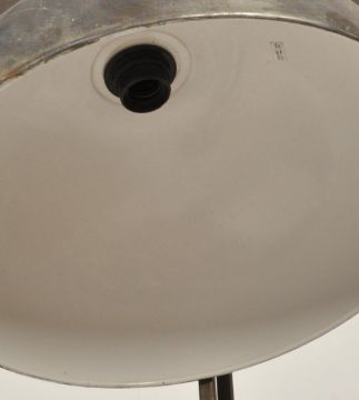 A late 20th Century industrial retro style floor standing lamp in the manner of Anglepoise Herbert Terry having a round bowl shade and a circular base. Measures 174cm tall.
