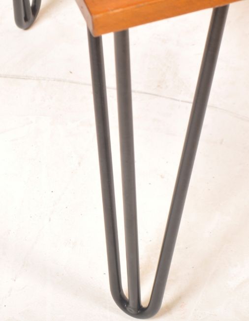 A vintage retro mid 20th century circa 1960’s teak wood Danish inspired TV unit / Hi-Fi entertainment cabinet. The cabinet of a rectangular form with single door cupboard to the right and open back cupboard to the right raised on black painted metal hairpin legs. Measures 63cm high x 92cm wide x 48cm depth.
