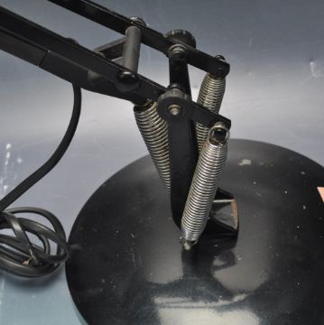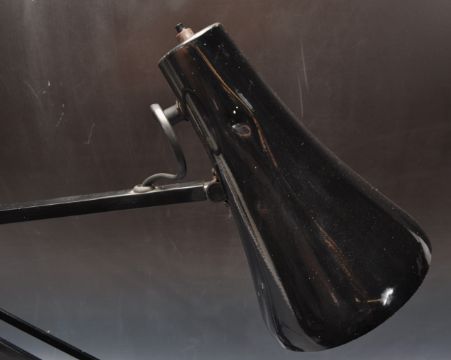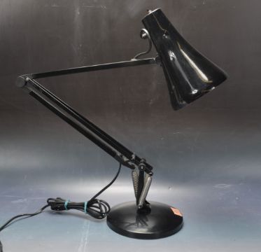 Herbert Terry & Sons - Anglepoise - Model 90 - An original retro vintage 1970s 20th Century English articulated anglepoise work desk lamp light. The lamp in coffee enamel colourway raised on a weighted circular base and pendant shade. Marks to the arm. Each measures approx 69cm tall.