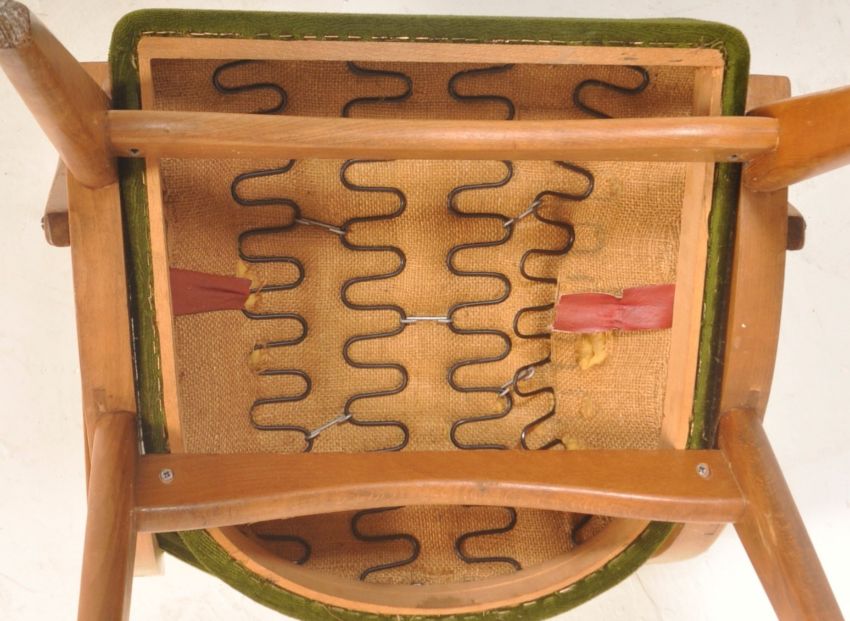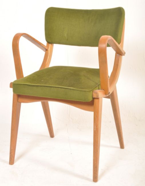 A vintage retro 1960's Ben Chair armchair having show wood angular frames and arm rests upholstered in the original faux green leather. Measures, 82 cm H x 52 cm W x 55 cm D