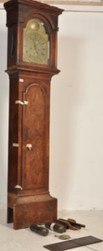 Thomas Moore of Ipswich - A George III walnut case grandfather long case clock having brass face with Roman numerals to the chapter ring glazed hood brass movement complete with pendulum and weights. A/F all the parts appear to be there.Measures, 202 cm H x 48 cm W x 25 cm D