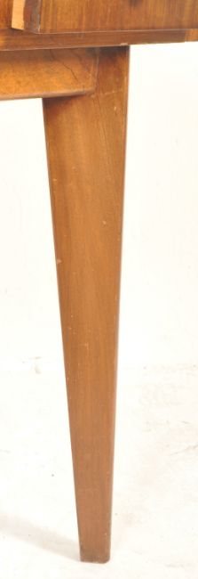 A vintage retro mid 20th century danish inspired desk / ladies desk in the manner of Alfred Cox. The desk of a rectangular form with three drawers to the frieze raised on tapered angular legs. Measures 74cm high x 116cm wide x 47cm depth.