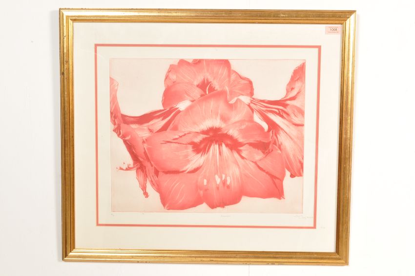 Will Wong - A late 20th Century framed and glazed artist proof (red-ink) etching entitled 'Amaryllis'. Signed and dated by the artist to the bottom right, dated 30/06/95. Set within a gilt frame. Measures approx; 66cm x 75cm.